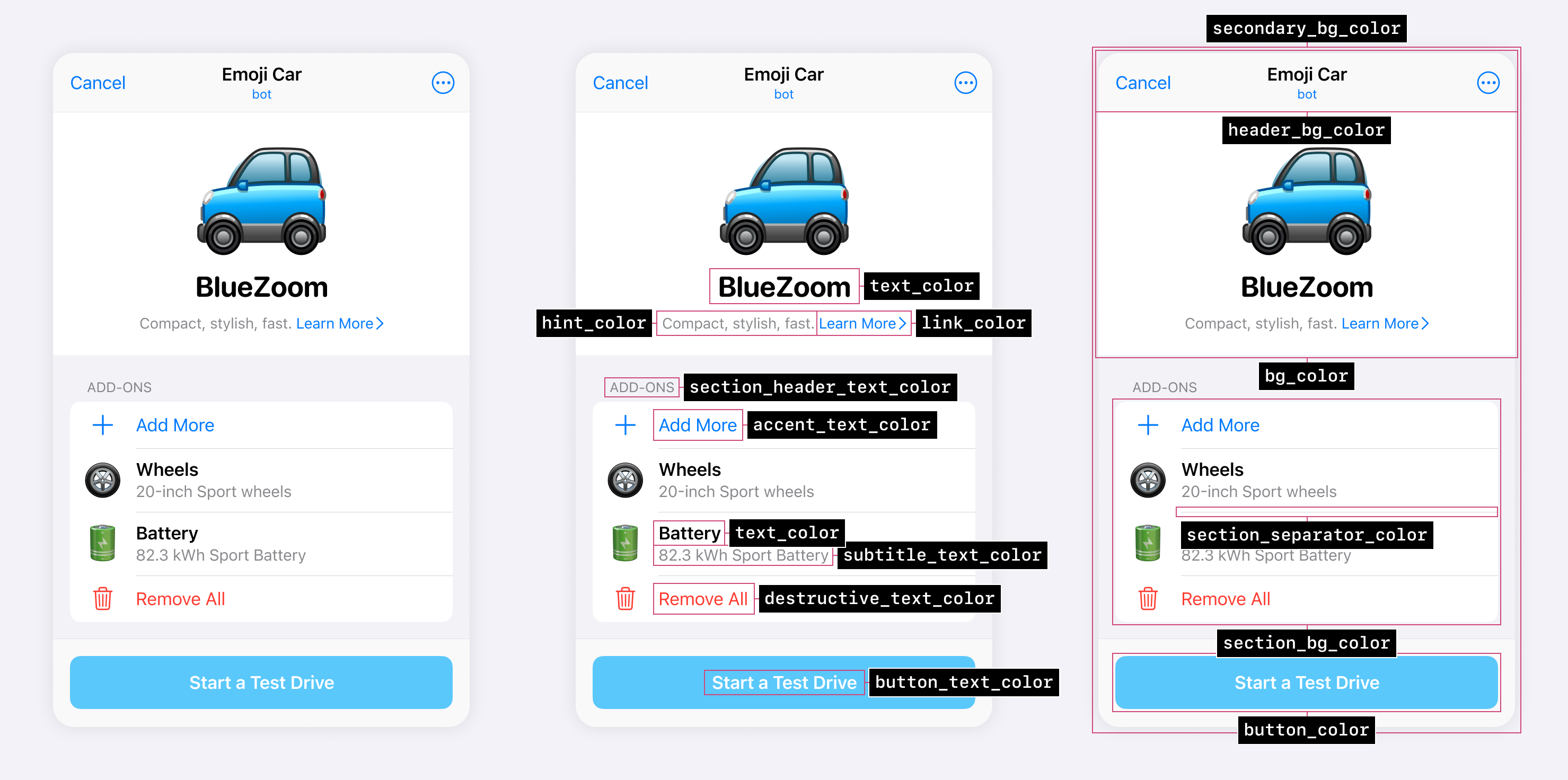Mini Apps always receive data about the user's current color theme in real time, so you can adjust the appearance of your interfaces to match it. For example, when users switch between Day and Night modes or use various custom themes.