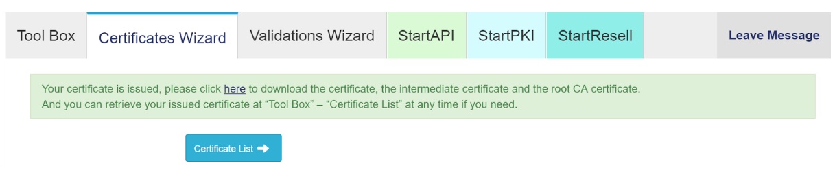 The end result of all this is a complete certificate chain, backed by either a root certificate we trust or, in the case of an untrusted root, a root certificate you're supplying to us. Make sure to verify your setup again after adding the intermediate, once done, you're good to go!