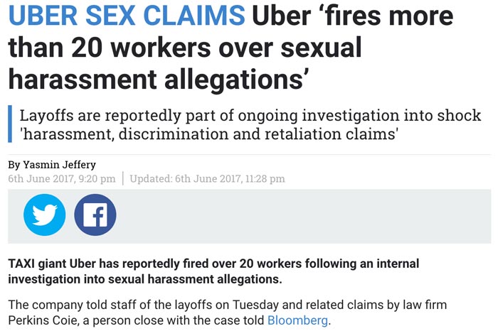 In the example above, the lead paragraph is highlighted in bold: “TAXI giant Uber has reportedly fired over 20 workers following an internal investigation into sexual harassment allegations.”